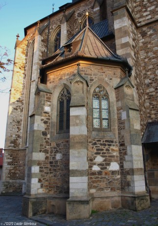 Katedrála sv. Petra a Pavla a Dietrichsteinský palác pohledem z věže Staré radnice.